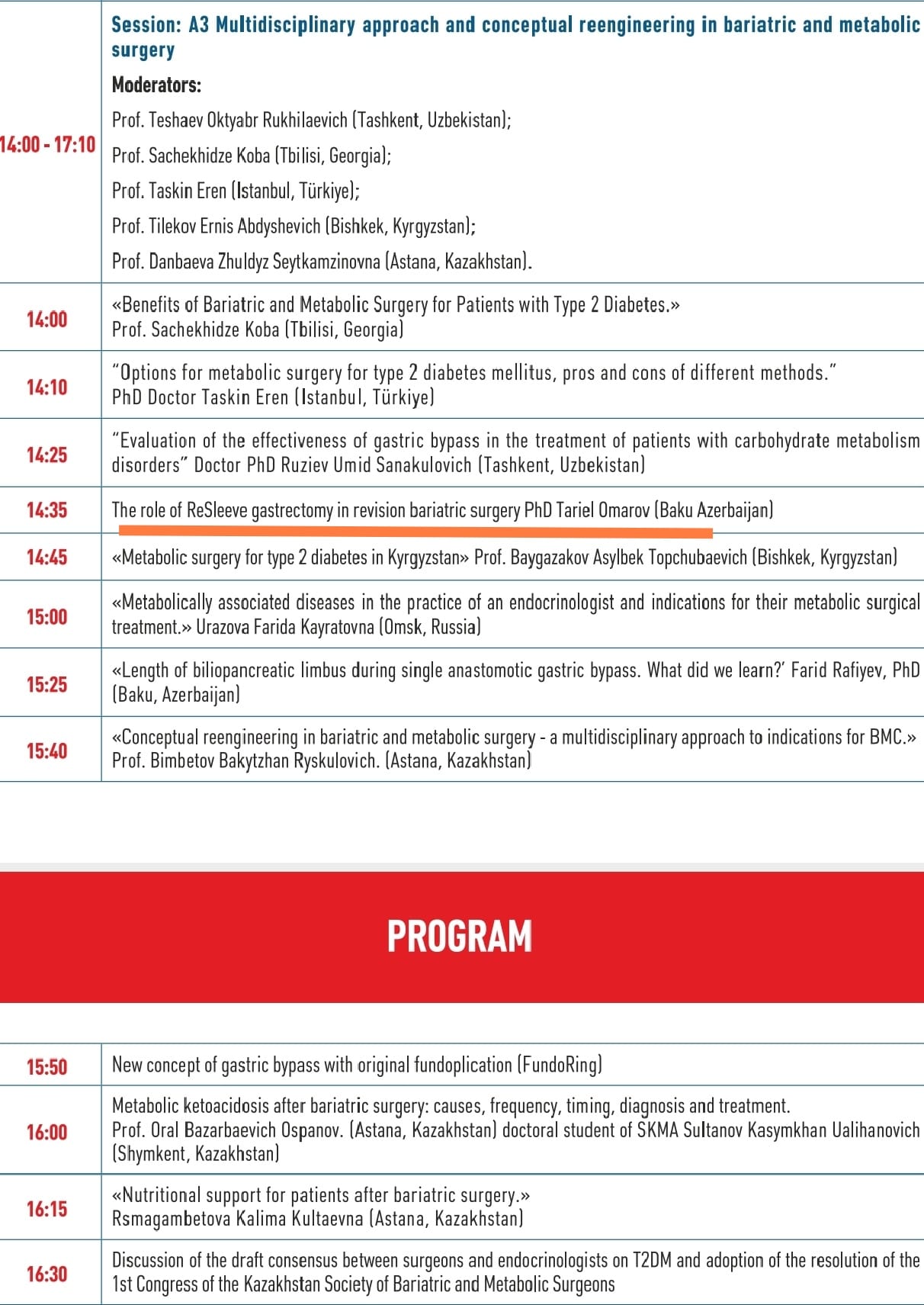 Təkrar mədə kiçiltmə əməliyyatlarından bəhs edən çıxişimiz isə daha çox maraq doğurdu və geniş sual cavab ətrafinda davam etdi. Canlı əməliyyat görüntüləri ilə əhatə olunan prezentasiya isə orta Asiya dövlətlərindən gələn cərrahlar daha çox maraq göstərirdi. Çünki mədə kiçiltmə əmliyyatini yeni başlayanlar üçün gələcəkdə uğursuzluq olmasın deyə hansı qaydalar və hansı diqqət ediləsi incə məqamlar olmalıdr sualı onları çox maraqlandırırdı.